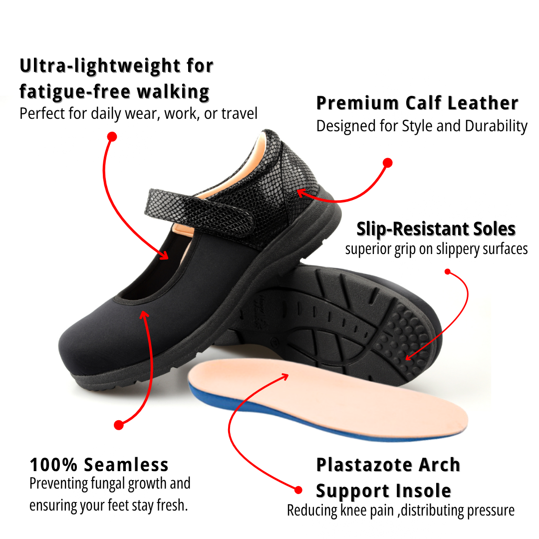 • Relief for Foot and Heel Pain: If you're dealing with foot or heel pain, our Diabetic Shoes are here to provide much-needed relief.