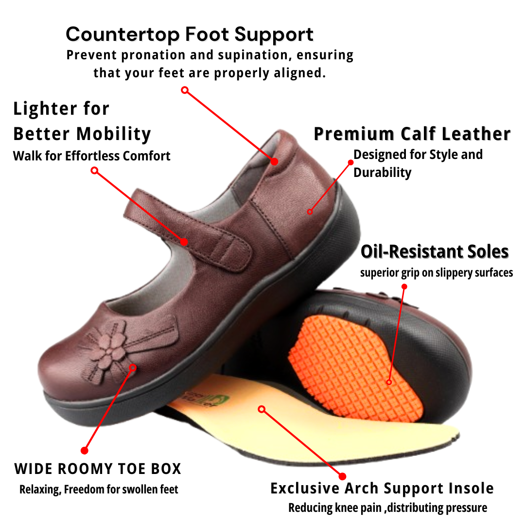1. Enhanced Comfort: Our shoes are equipped with arch support insoles designed to keep you comfortable, even during long hours of standing. By providing optimal support and cushioning